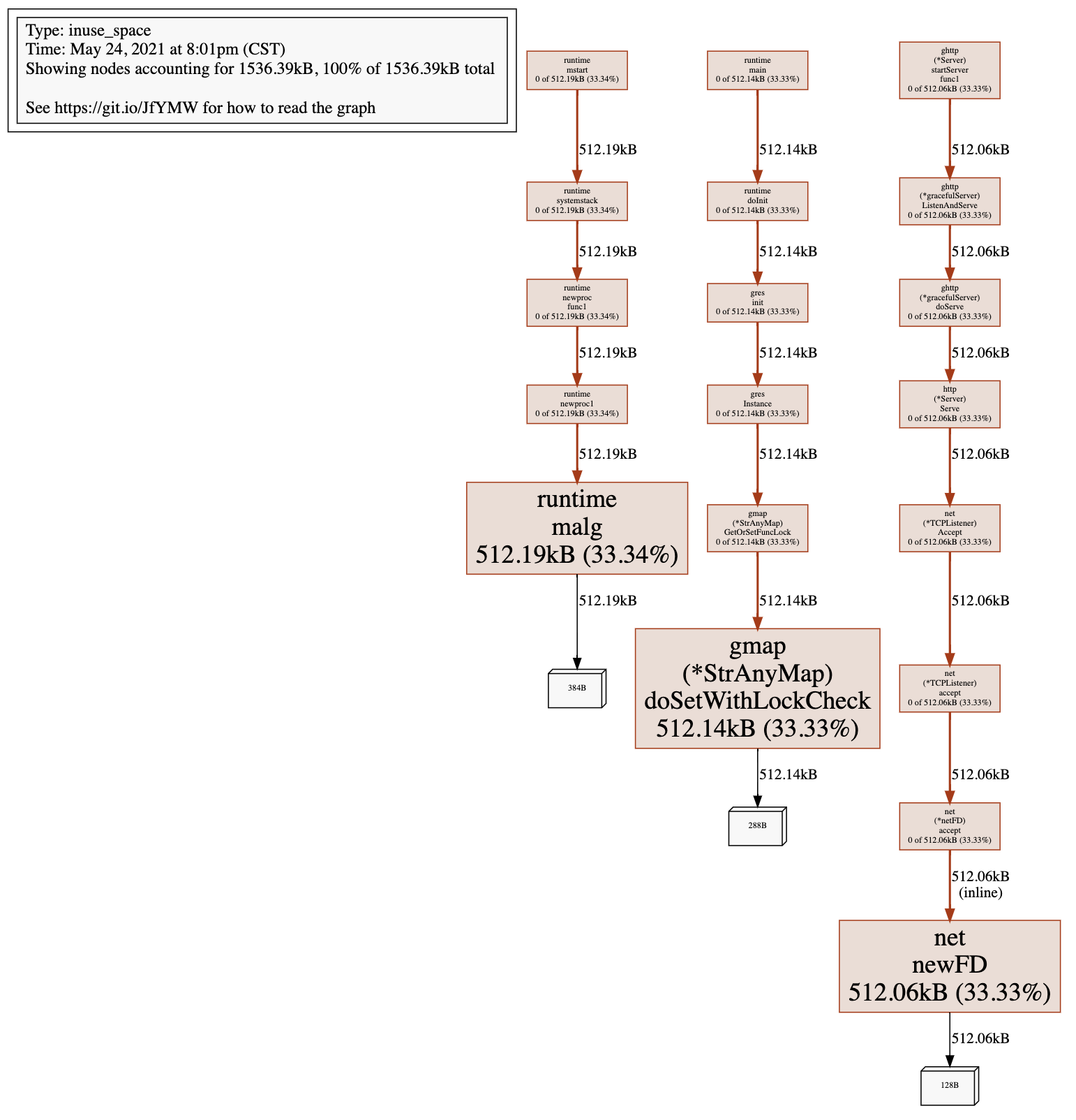512.19kB 33.34% 33.34% 512.19kB 33.34% runtime.malg