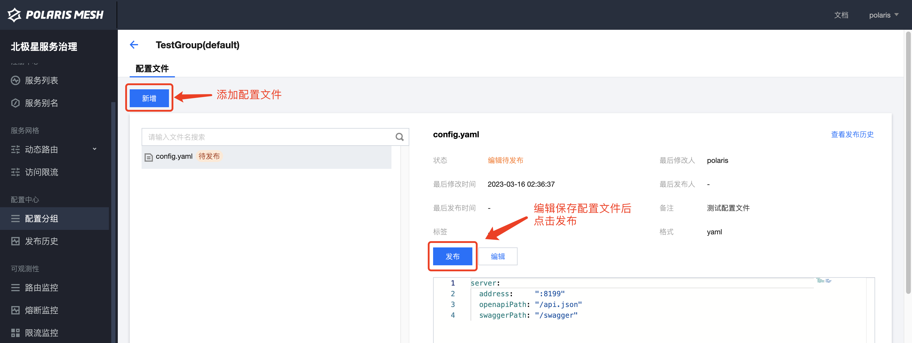 Polaris 的配置文件如下:
