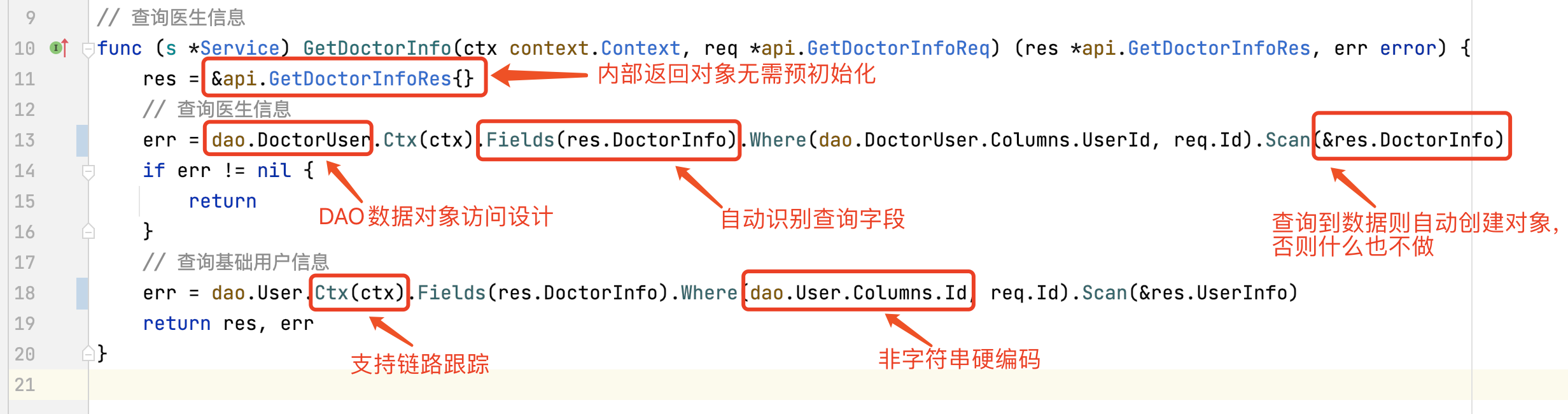 DAO 设计结合 GoFrame 的 ORM 组件性能和易用性都很强,可以极大提高开发和维护效率。看完本章节内容之后,小伙伴们应该能够理解并体会到使用 DAO 数据库访问对象设计的优点。
